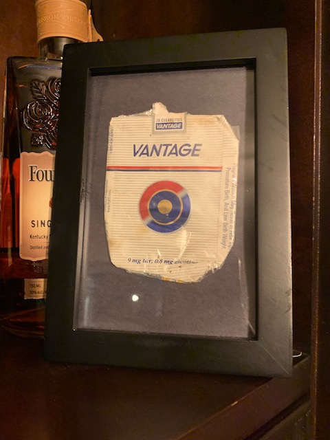 “Someone was saying hello today while I was working.” With the message, my brother-in-law sent a photo of a used package of cigarettes– my late father-in-law’s brand of choice, Vantage. The only times in my life I ever bought cigarettes were for my father-in-law when he was running low. Seeing the Vantage wrapper took me (and I suppose the rest of the family) right back to the time when Tom was still here with us. Obviously, other people smoke Vantage brand cigarettes and finding a wrapper in the wall of the building where my brother-in-law was working as an electrician has sensible explanations, but to the Rowland family it felt like a little wave from heaven. As a gift, my brother-in-law framed the package and gave it to my husband and me for Christmas. It now adorns a shelf in our home, yet another reminder of a man we sorely miss.